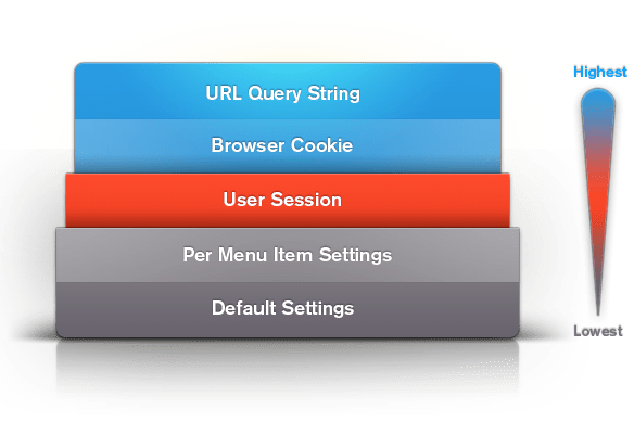 The highest method that sets a value will always win. For example, if a backgroundlevel is set to high by for a particular menu item, but it is set to low by a URL link passing it in on a query string, then it is going to be set to low when the page is displayed because the URL Query string has higher precedence than the per-menu item setting.