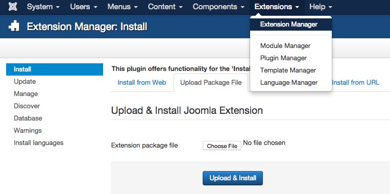 The alternative method is actually identical to installing Gantry in the first place, and necessary for upgrading the Gantry template. You would just need to download the latest Gantry files, and install at Extensions → Extensions Manager → Install. Select the Choose File button and locate the downloaded ZIP and click Upload & Install to begin the update. There is no need to uninstall first as the files will be updated during the installation process.