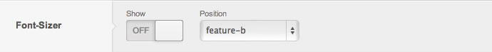 The Font Sizer feature controls the output of the front end font sizer controls allowing users to increase or decrease font size. From this option you can enable/disable the display of the front end font sizer controls, as well as select a location for the font sizer to display in using any of the available module positions in the template.