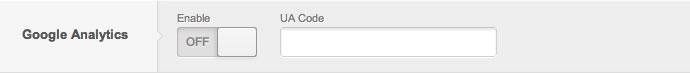 The Google Analytics feature allows you to enable Google Analytics tracking on your site in a quick and easy way. Just enable the feature and input your UA Key assigned to you by Google in the field provided.