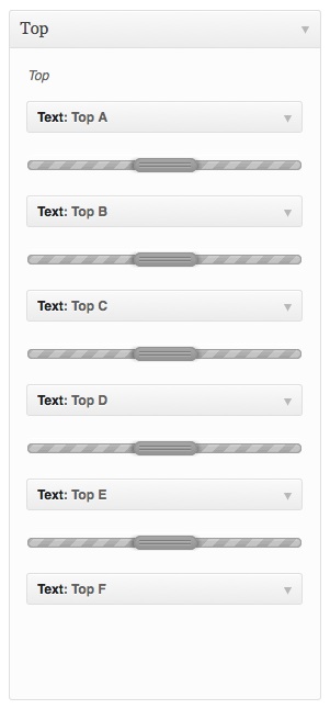 Each of the major widget positions is represented with a slider to allow for dynamic control widget layout. This is based on how many widgets are placed in that position. By default, placed widgets will be displayed at equal sizes.