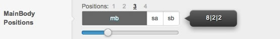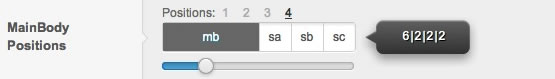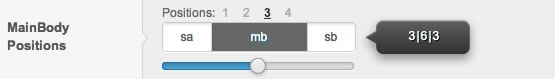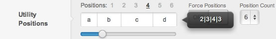 Number links from one to six sit on top of the slider which represent the number of positions you want to configure for. For example, if you are setting up the layout for a page which has four positions in use, you will want to first select the #4 link at the top of the slider for that position.
