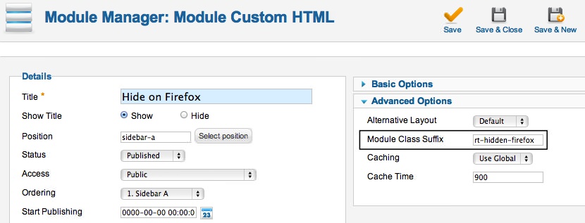 Now, we can put rt-hidden-firefox in the Module Class Suffix of the module we want to hide on Firefox.