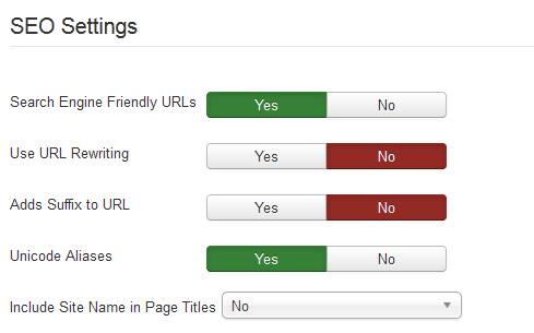 The next thing you may want to do is to navigate to the Global Configuration page and access SEO Settings. This area of the administrator can be accessed by navigating to Administrator -> Site -> Global Configuration.