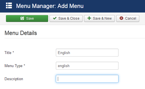 When you create the new menu item, you can do so as you would normally. The only additional steps required is that you set the Menu Location and Language to your desired language-specific menu and language. You may also want to create a home page menu item for that individual language, as this will make each visitor's landing page appear in their native language.