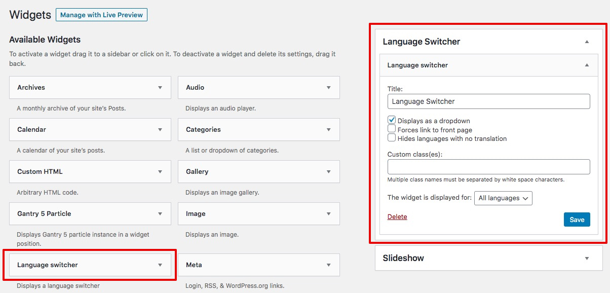 Everything written here can be applied to any Gantry 5 theme. We'll provide instructions for setting up a multilingual site using the free WordPress plugin, Polylang.